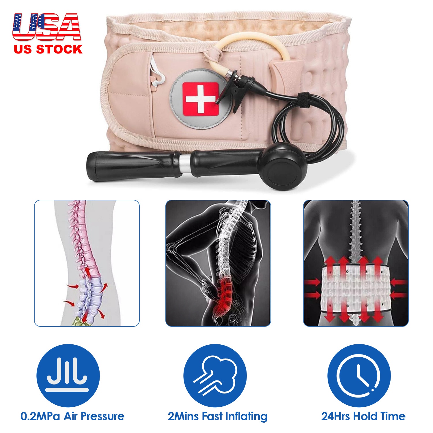 Home > Decompression Back Belt Lumbar Spine Support Lower Back Air Traction Device with Hand Pump Extension Pad for Men Women Pain Relief Fit For All Waist